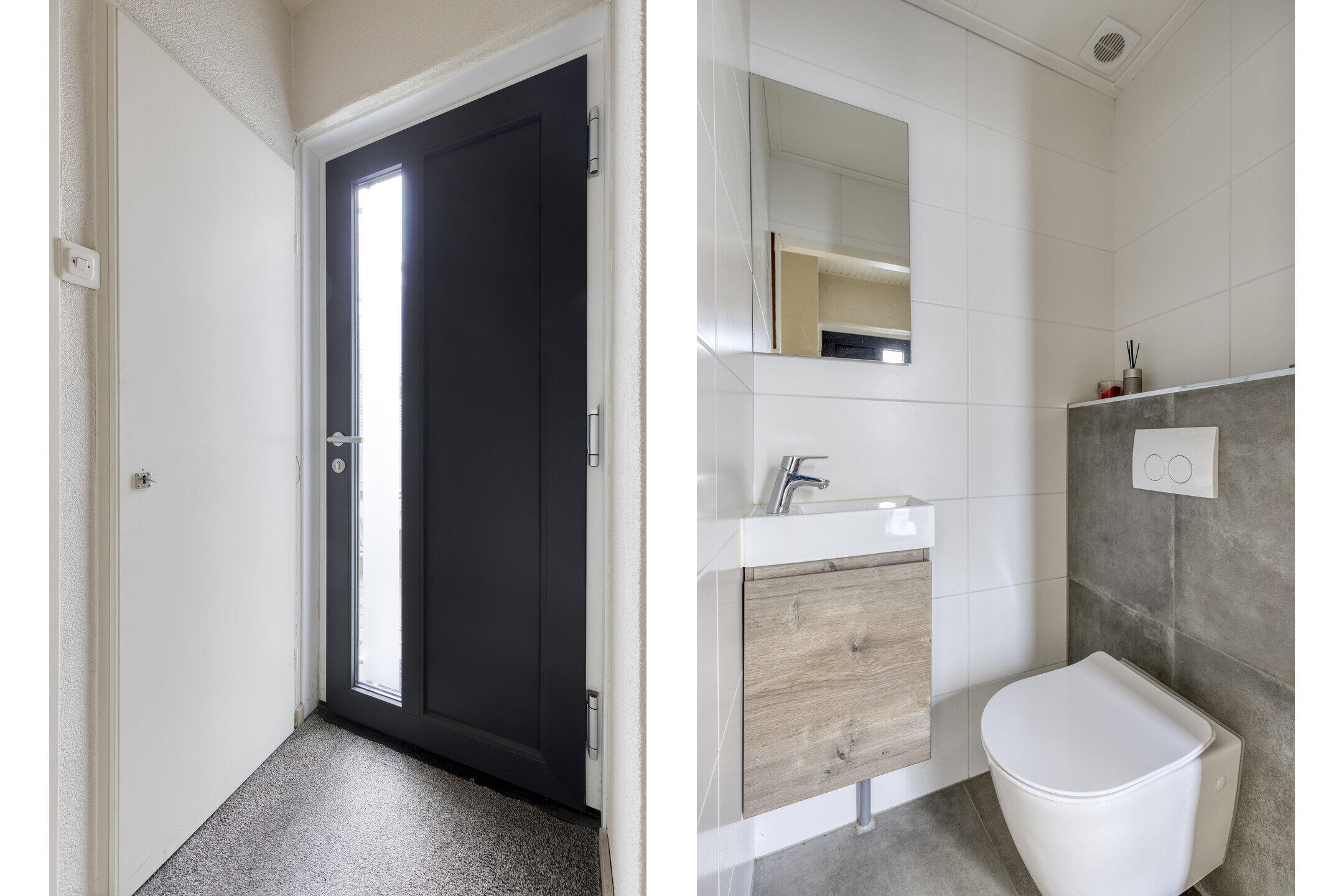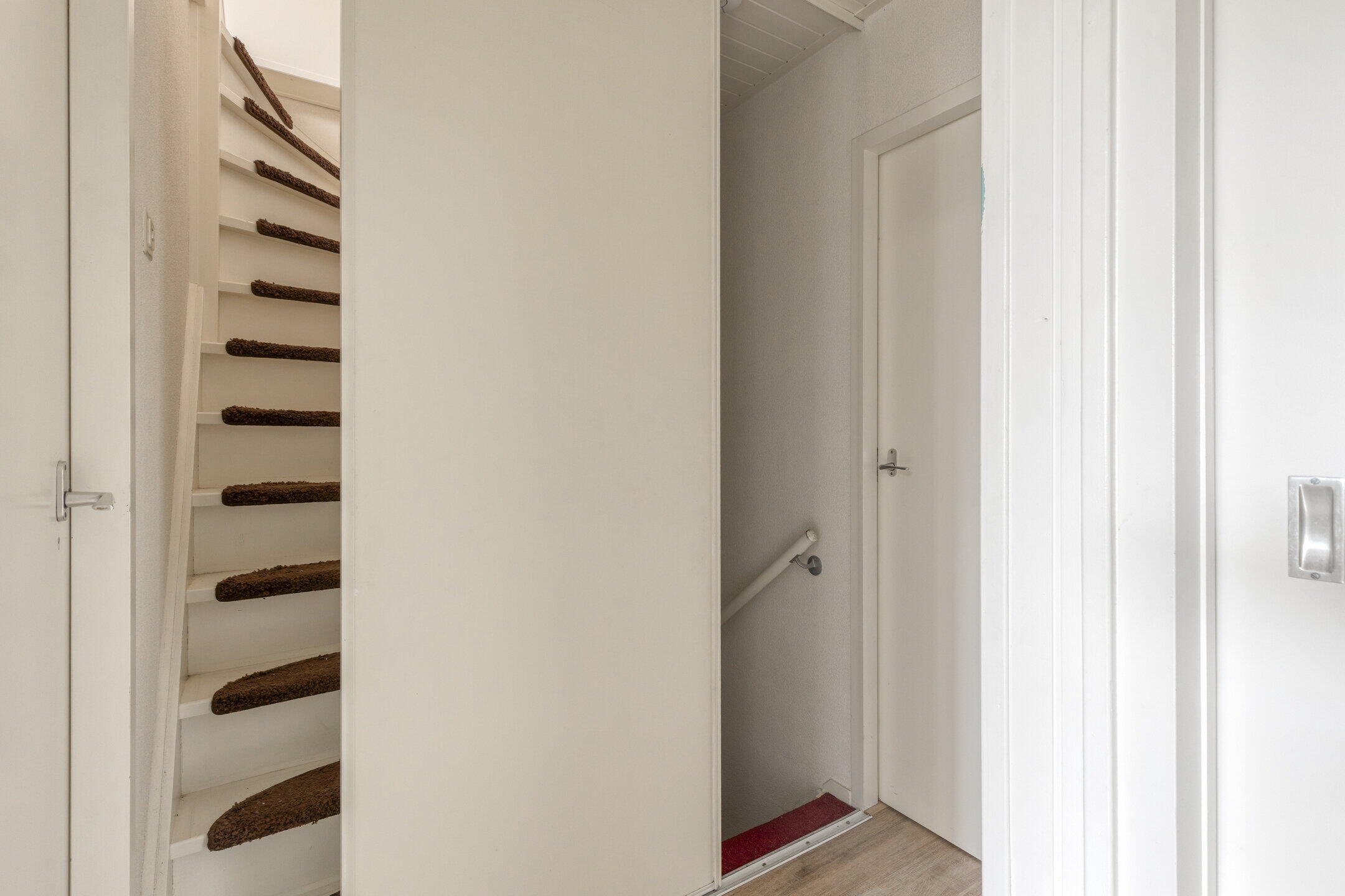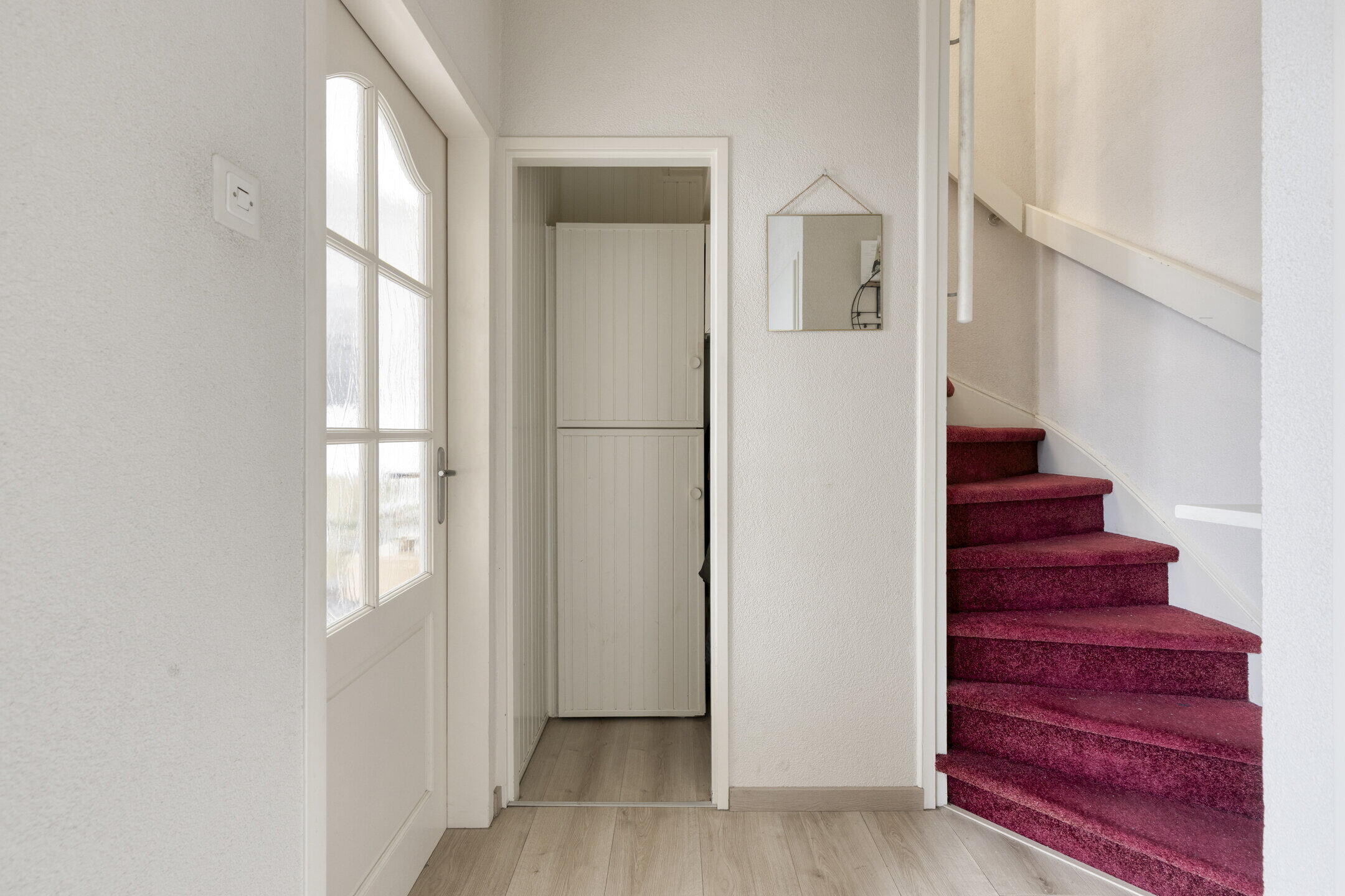 Je parkeert je auto comfortabel op je eigen oprit en stapt de woning binnen via een nette entree. In de hal vind je het toilet, de trapopgang naar de eerste verdieping en toegang tot zowel de garage als de woonkamer. Een praktische en verzorgde binnenkomst die direct een goede eerste indruk geeft.