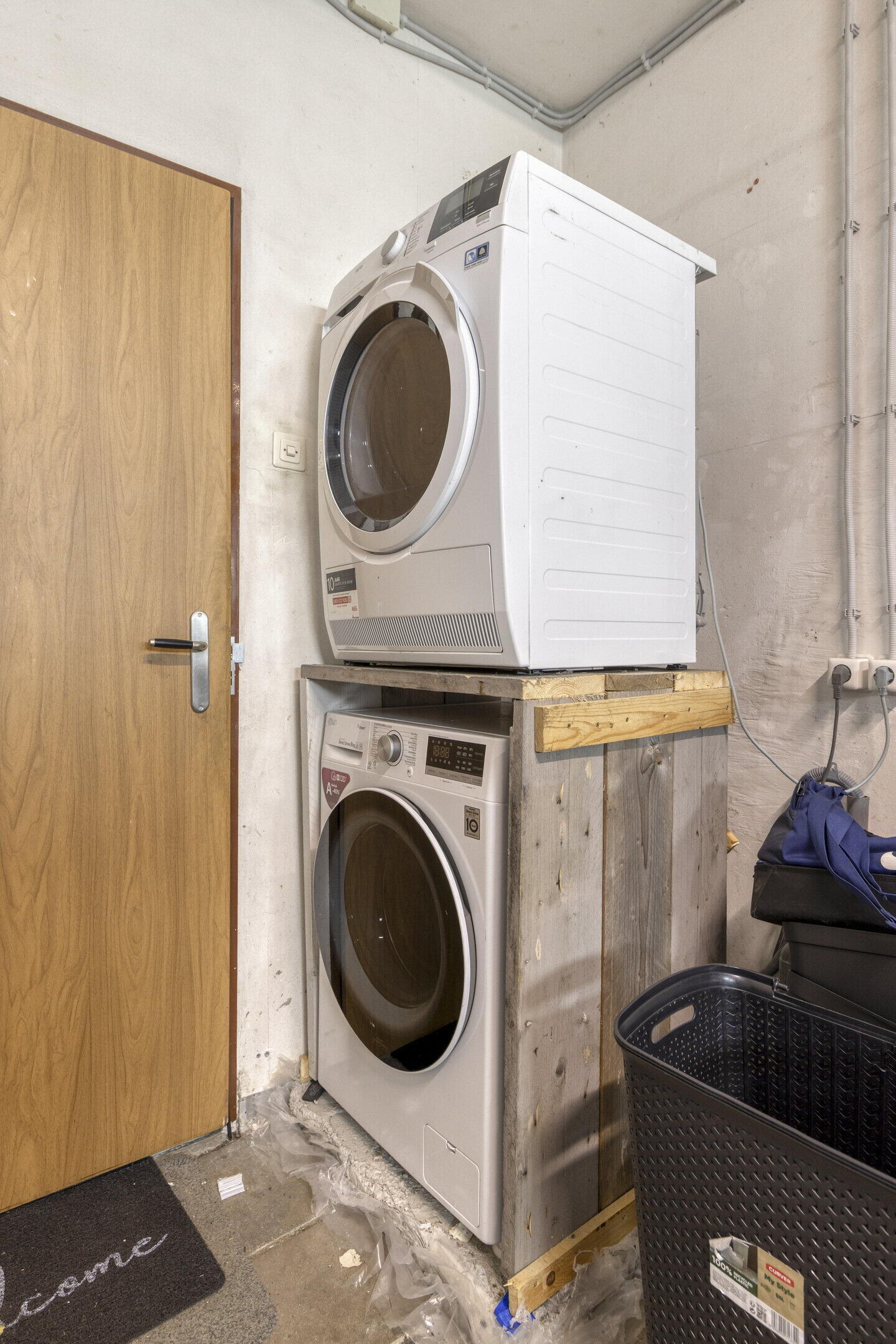 De garage is ruim en bied gelegenheid voor wasmachine en droger.
