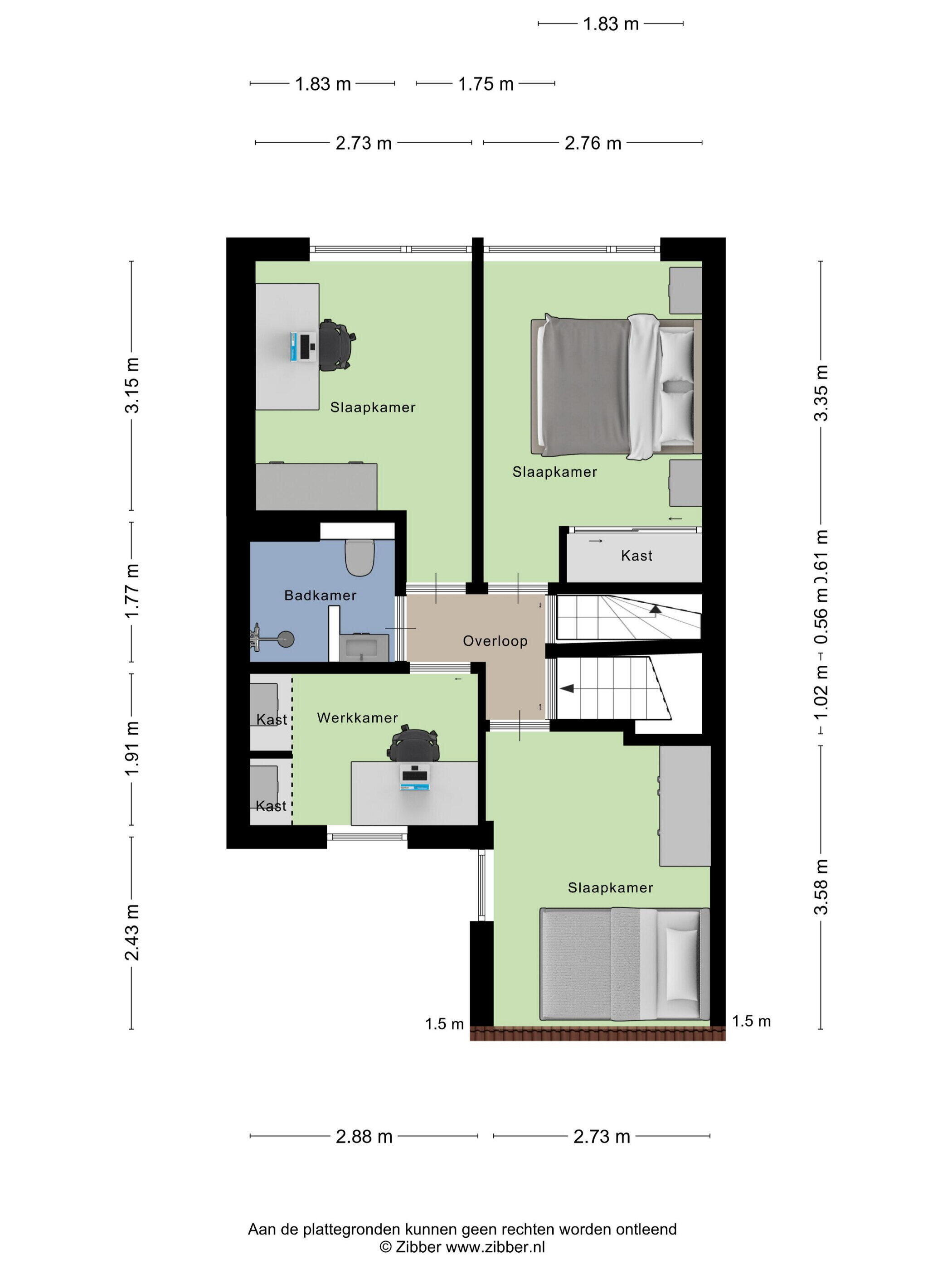 De tweede verdieping biedt nog meer ruimte: een ruime overloop met extra opbergmogelijkheden en toegang tot een vijfde kamer. Deze is perfect als volwaardige slaapkamer of als ideale thuiswerkplek.